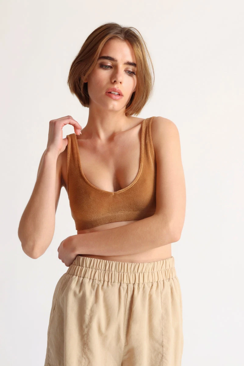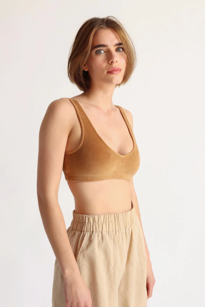 The Aimee Bralette is made from cotton and woven with stretch for a close fit and comfort that lasts all day. Pair with the Adaline Cardigan and Audriana Jogger for a matching look.