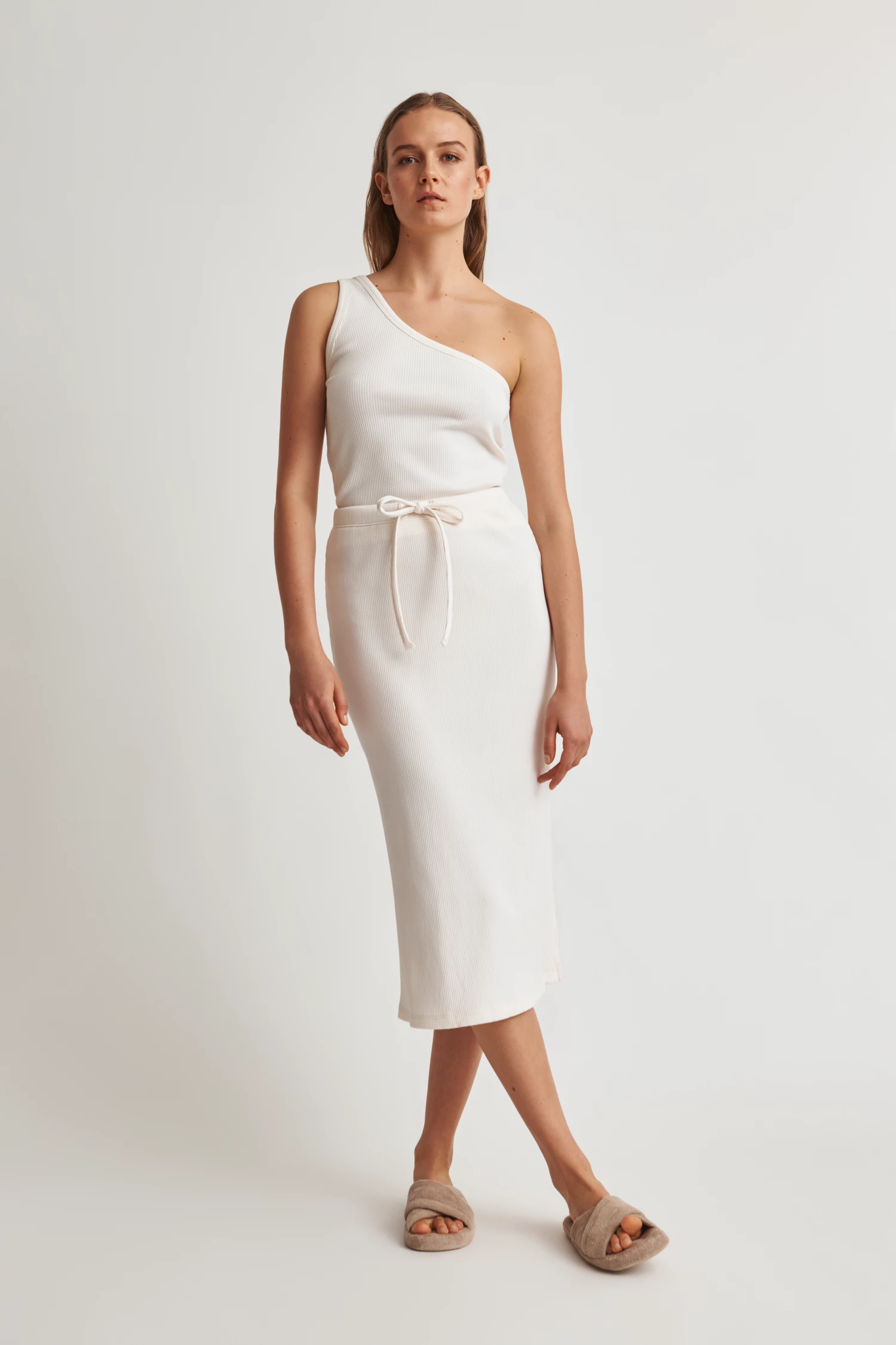Pima cotton and spandex blend together for a slim fit in this understated one-shoulder silhouette. Complement with the Imani Skirt and either Kyoto Slides or your favorite summer sandals.