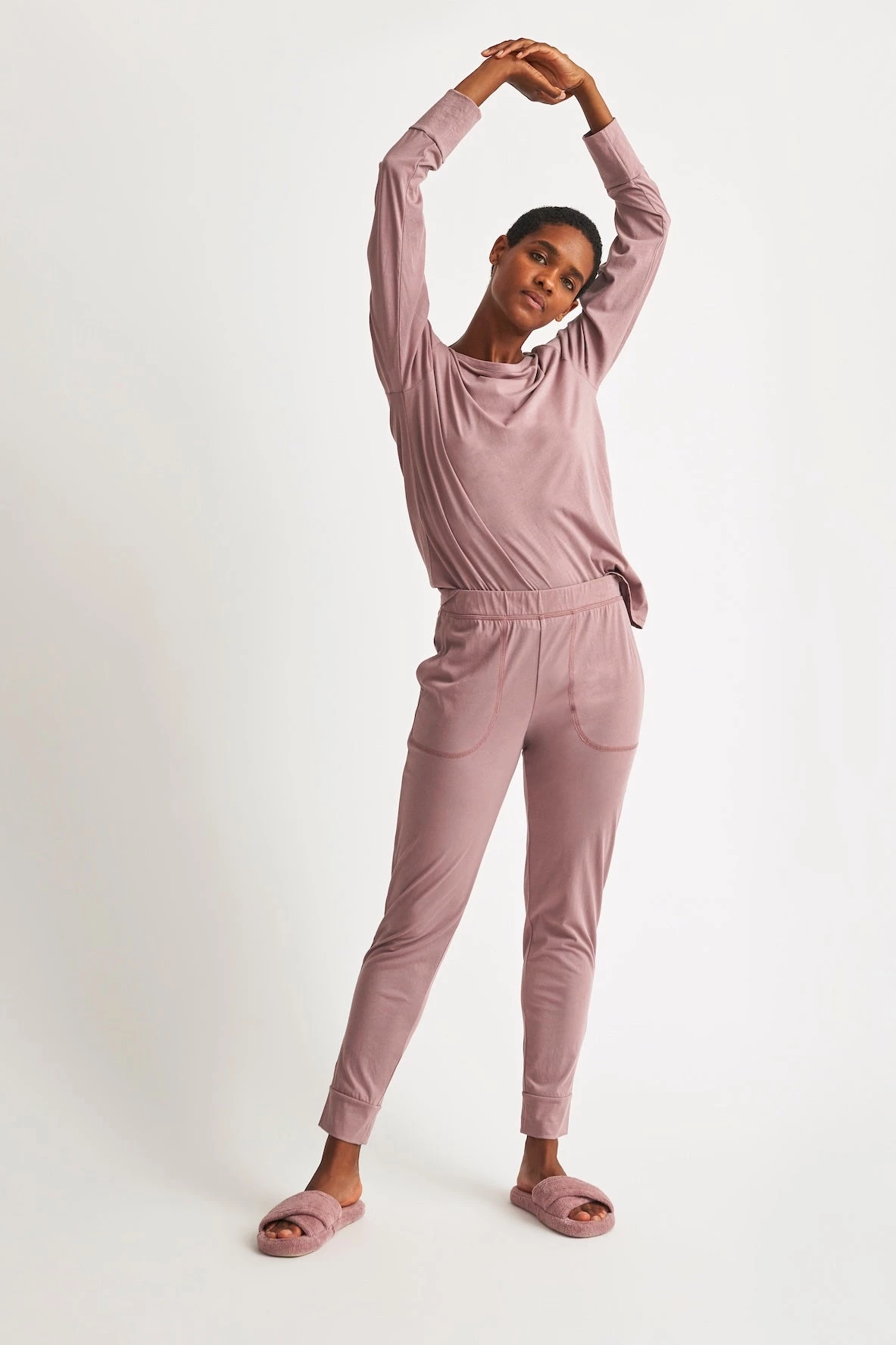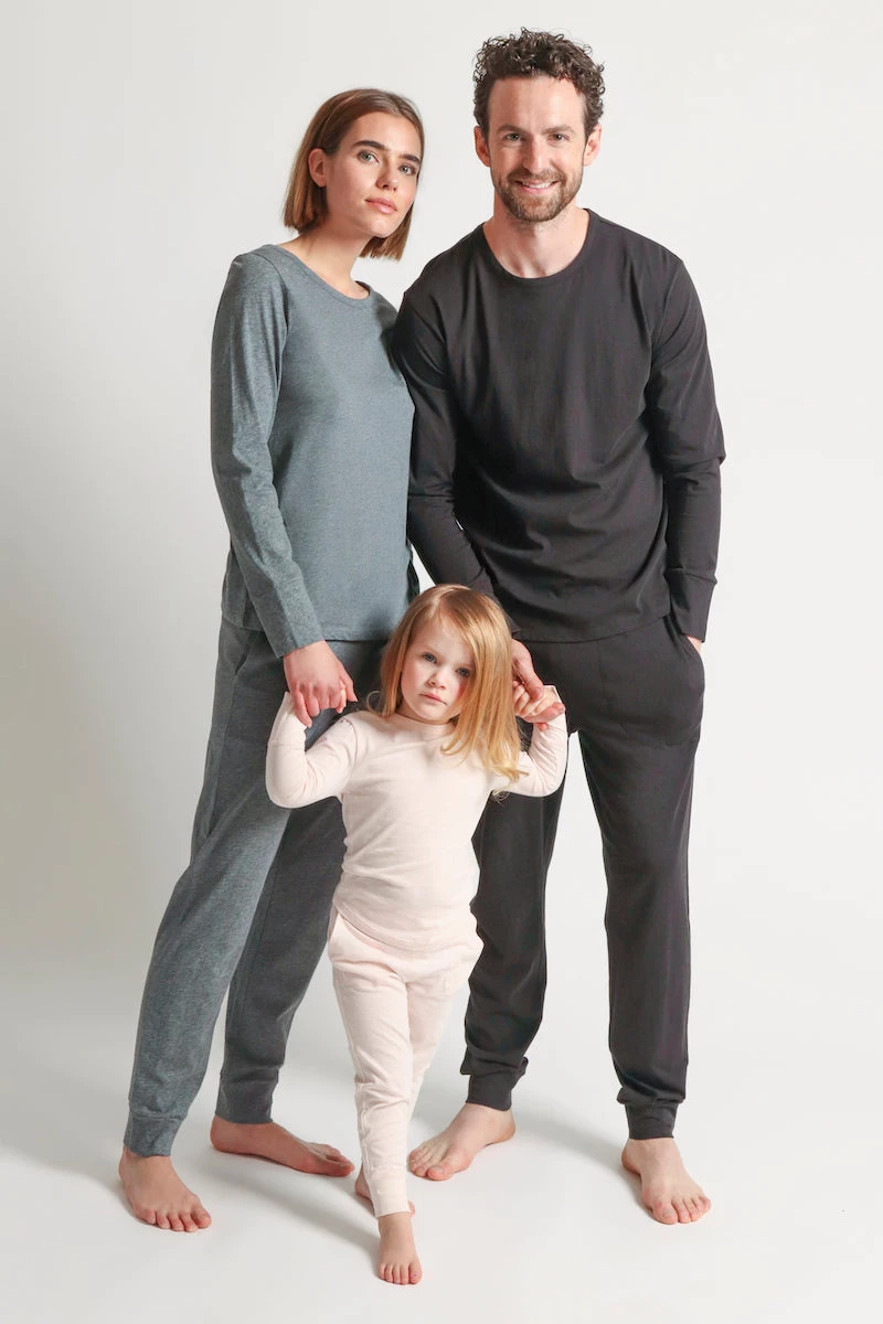 Lounge and sleep in comfort in our organic cotton, two-piece Cassandra PJ set. Wrap everyone in comfort this holiday season with the matching Family Pajamas.