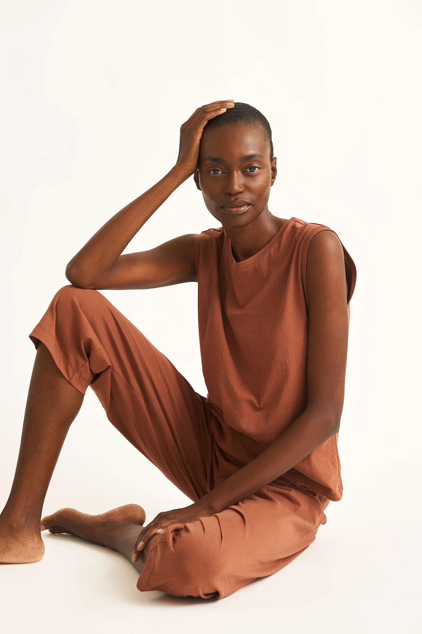 Fully organic cotton, the Colbie is a sleek, staple piece that looks just at good while getting ready for bed, working out, or paired with jeans and your favorite jacket. Pair it with the Carlyn Crop Pants.