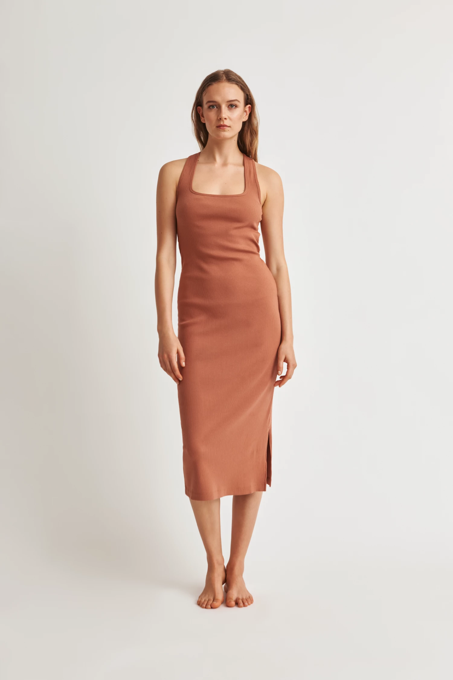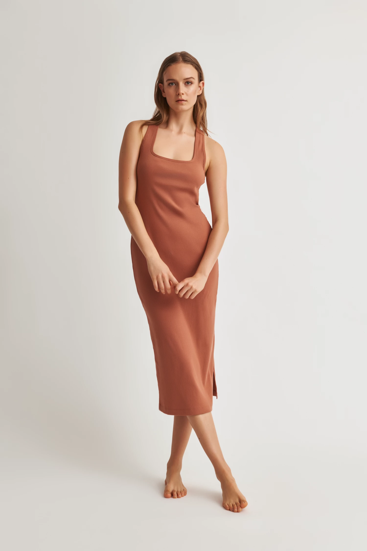 The ribbed, Pima cotton Iliana Dress features a square neckline, criss-cross straps and a built in shelf bra for added support. Equal parts feminine and flattering, you’ll never want to take it off.