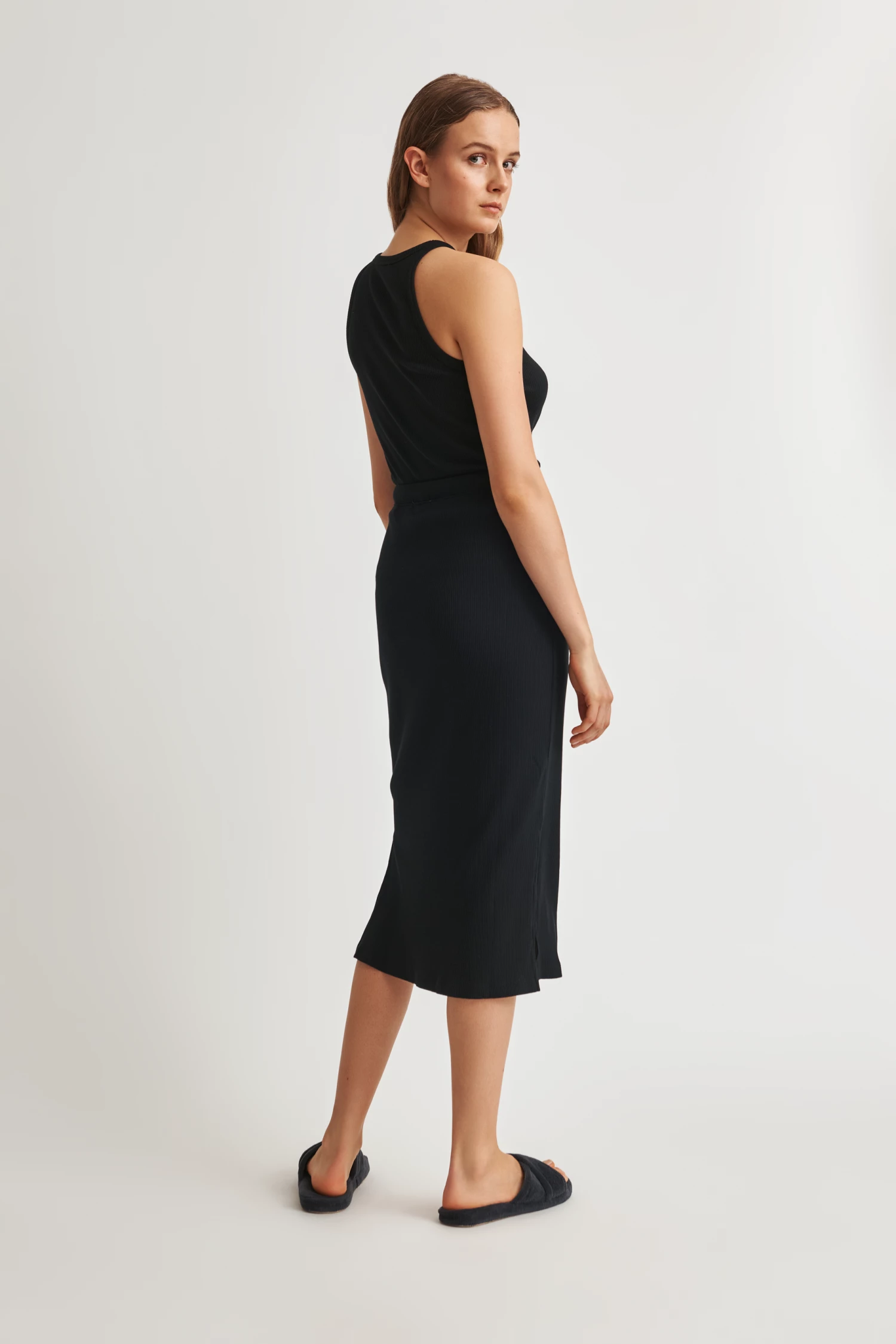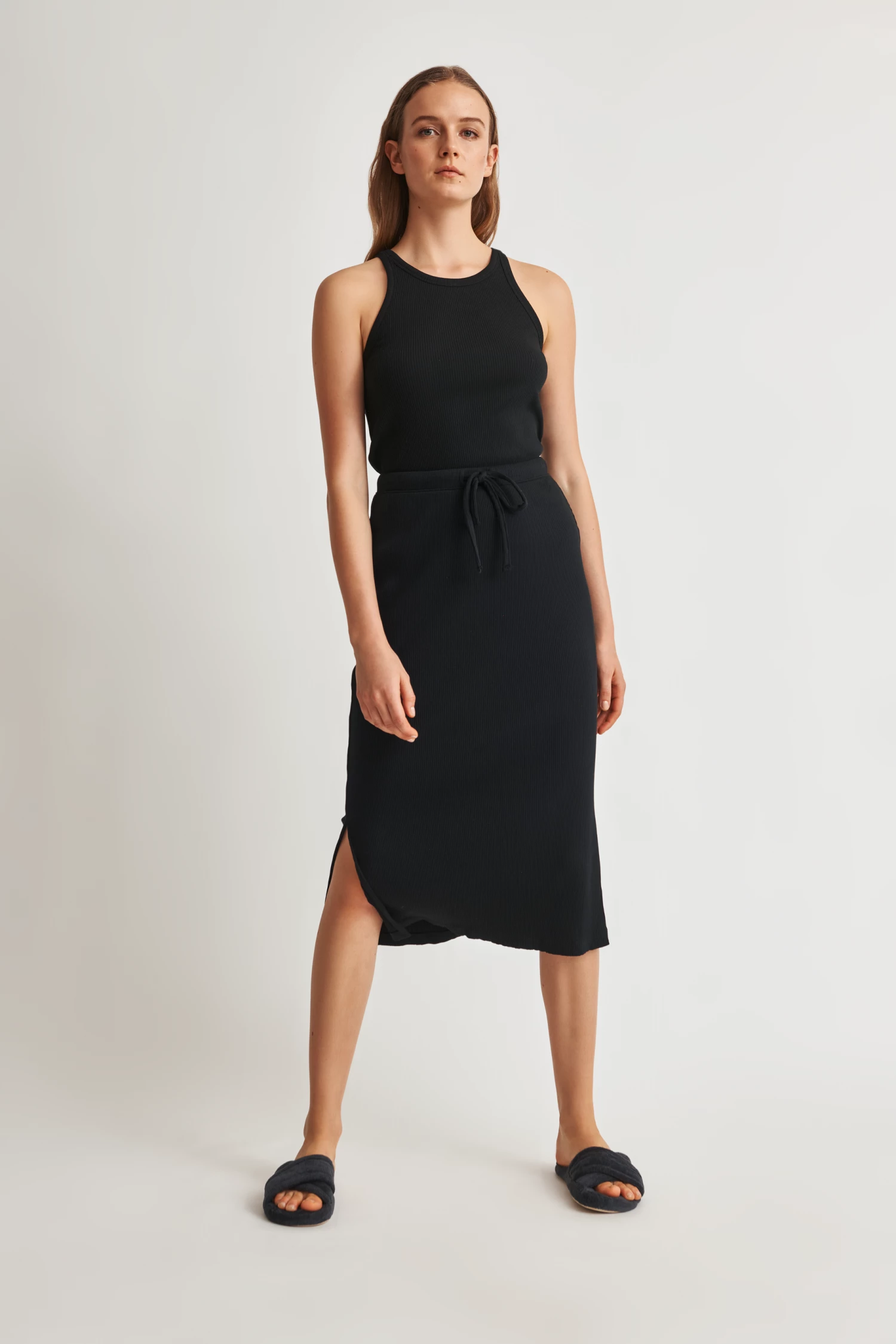 Evocative of endless summer, this midi skirt crafted of a stretch Pima cotton blend is perfect for everything from casual brunches to relaxing at home and is ultra-comfortable making it a great travel piece as well. Complete the look with the Ivy Tank or the Ilvie Top.