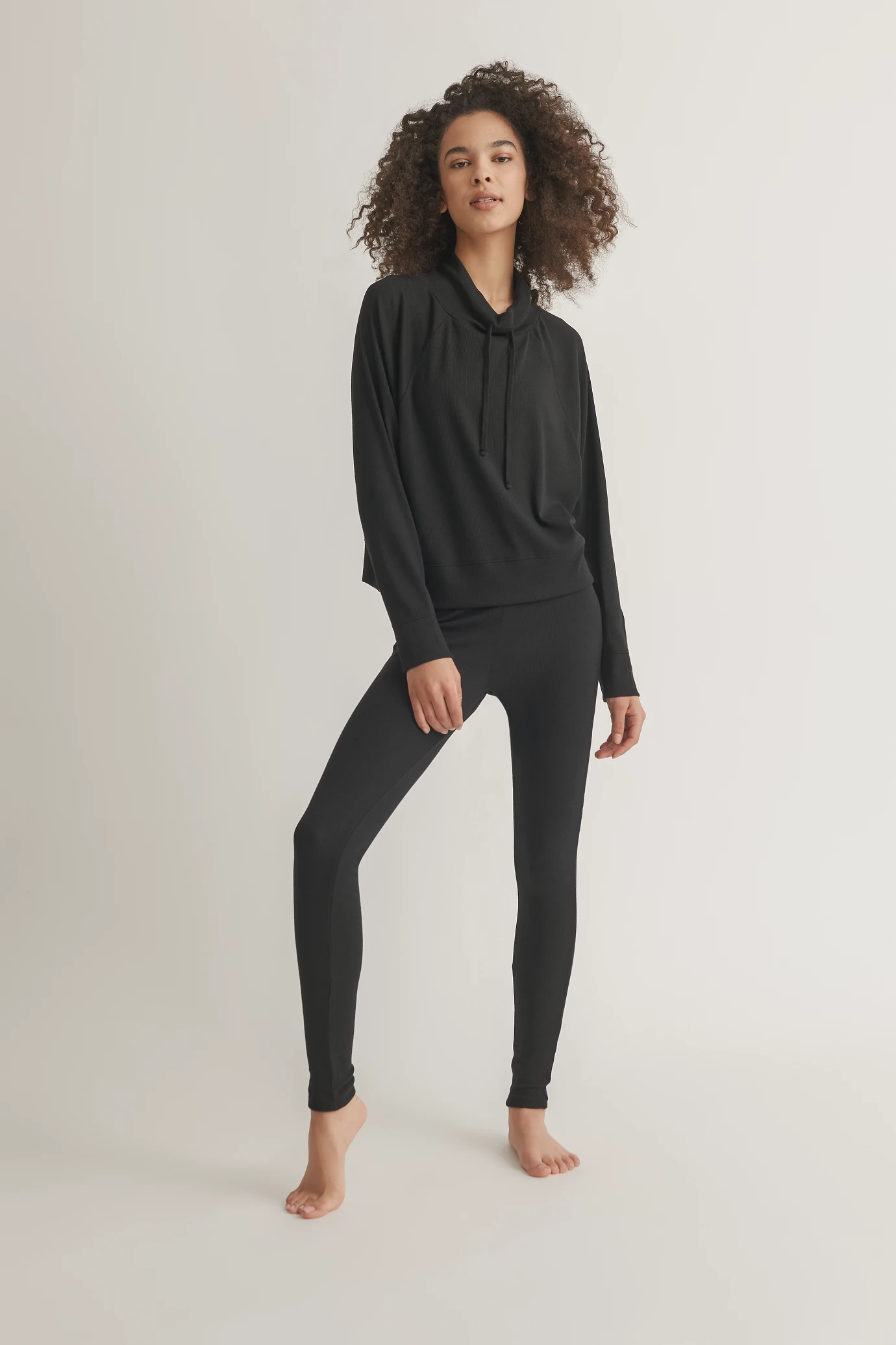 The Nilou Pullover from our travel collection is wonderfully soft, made from a finely ribbed fabric. A perfect piece to travel with or to lounge at home. Pair them with the Norma Double Layer Leggings.