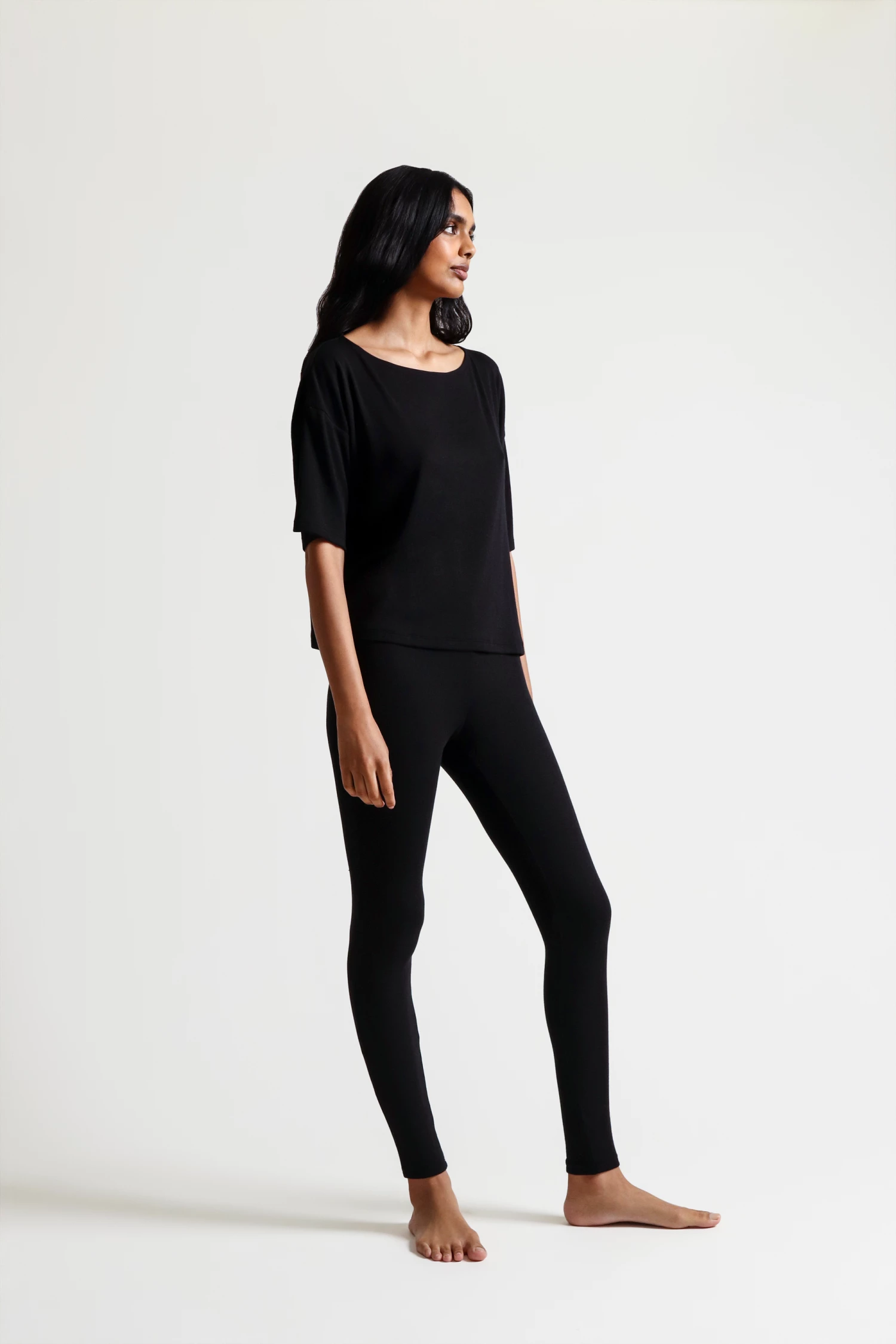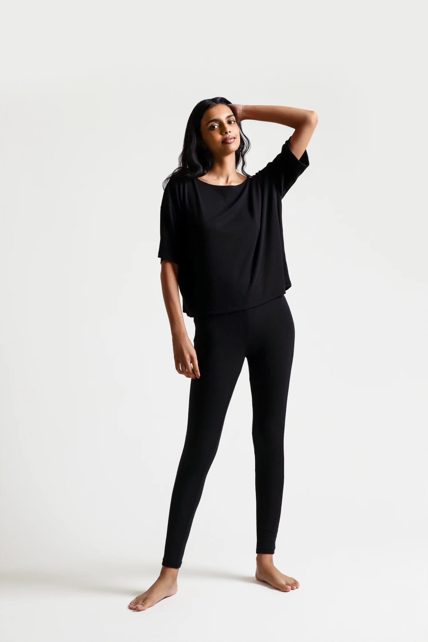 Crafted of our signature Pima cotton blend in a unique double-layer construction, this legging has become one of our ultimate go-to’s for travel, home life, and everything in between. The two layers offer additional coverage, supreme smoothing, and give these leggings an unmatched level of coziness. Shown with the Nilou Pullover.