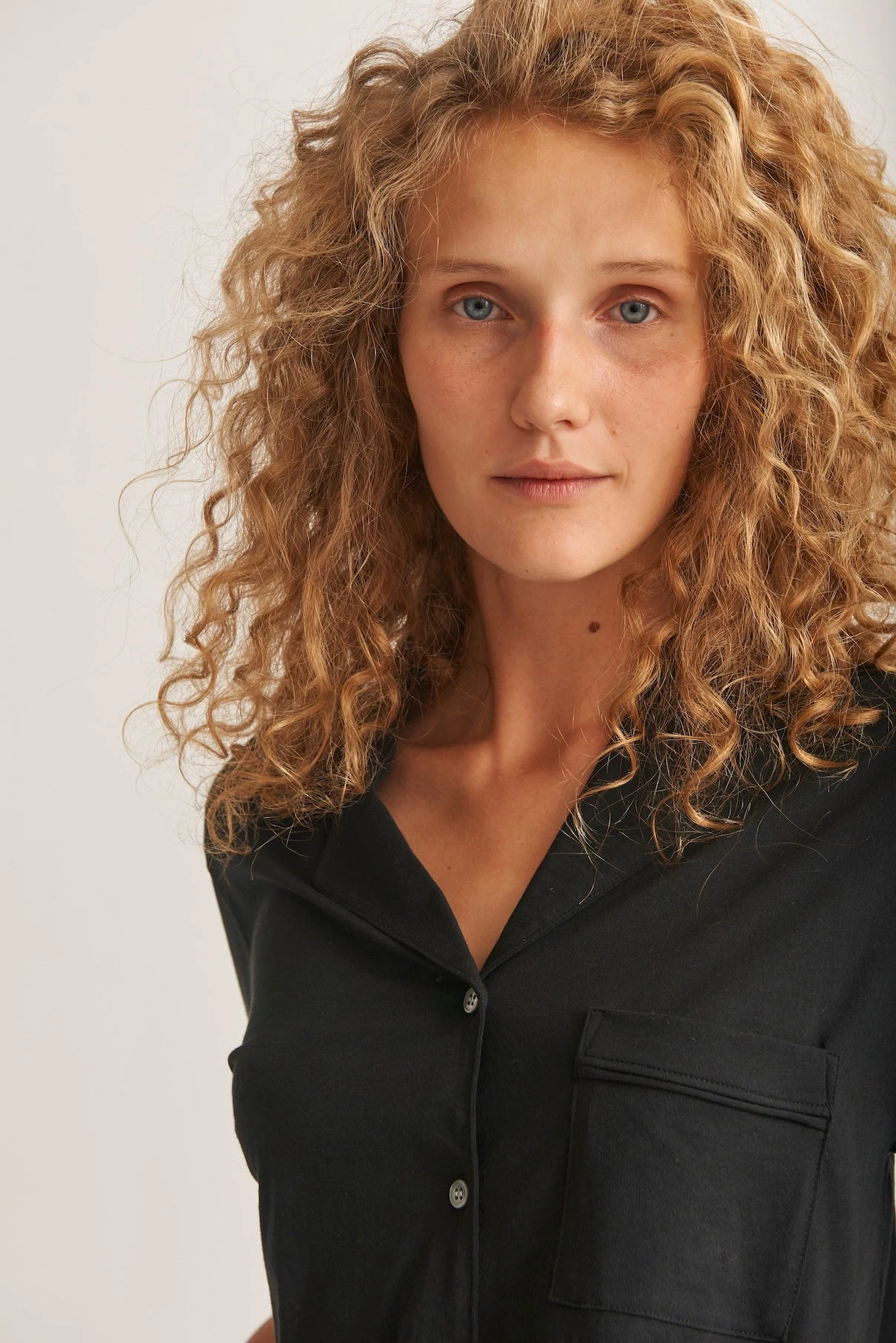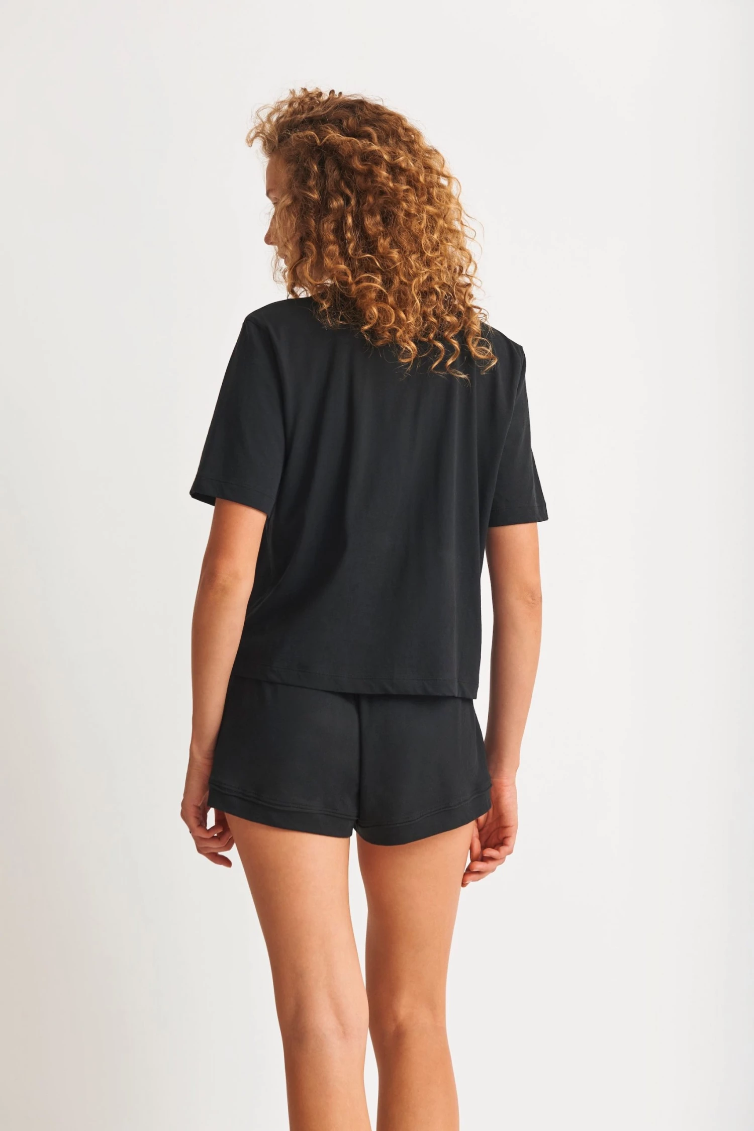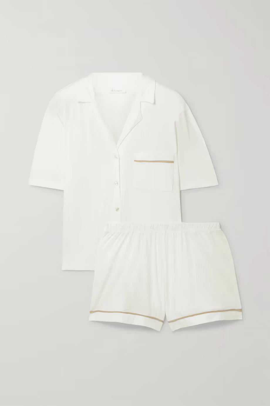 Soft Pima cotton composes this pajama set, which gains a touch of classic style from contrast piping and peaked lapels.