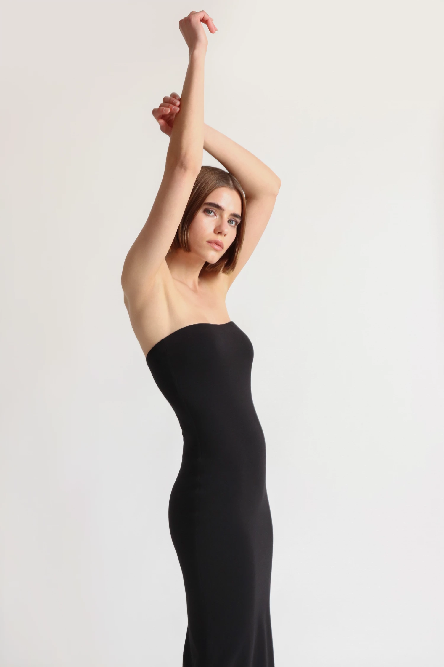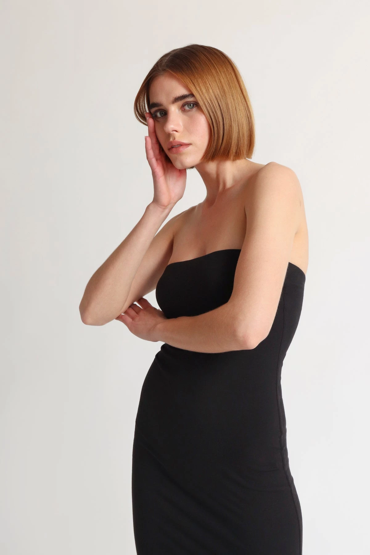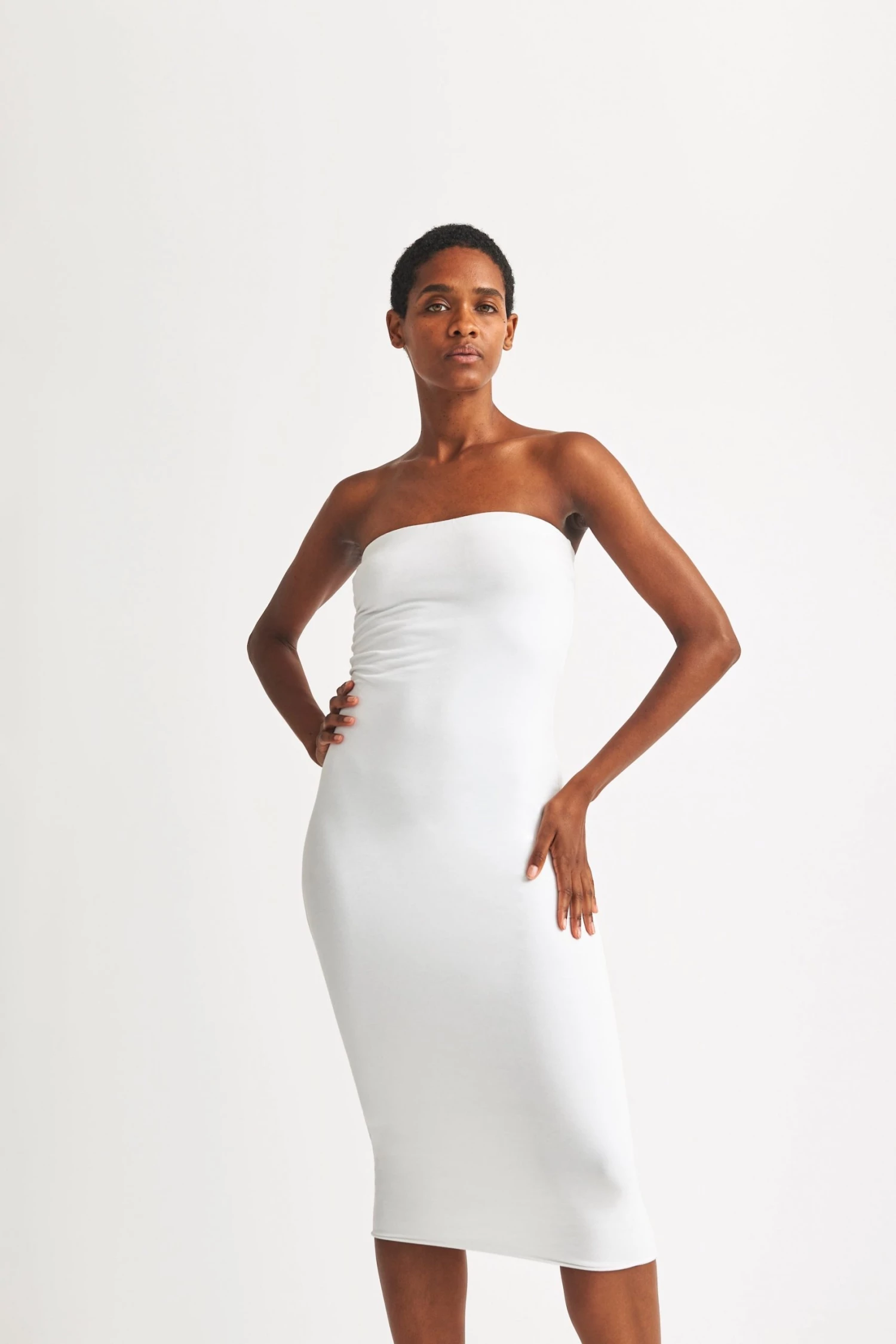 The organic Hestia Strapless Dress is made from comfortable organic Pima cotton. It’s cut to a figure-hugging silhouette with a strapless neckline.