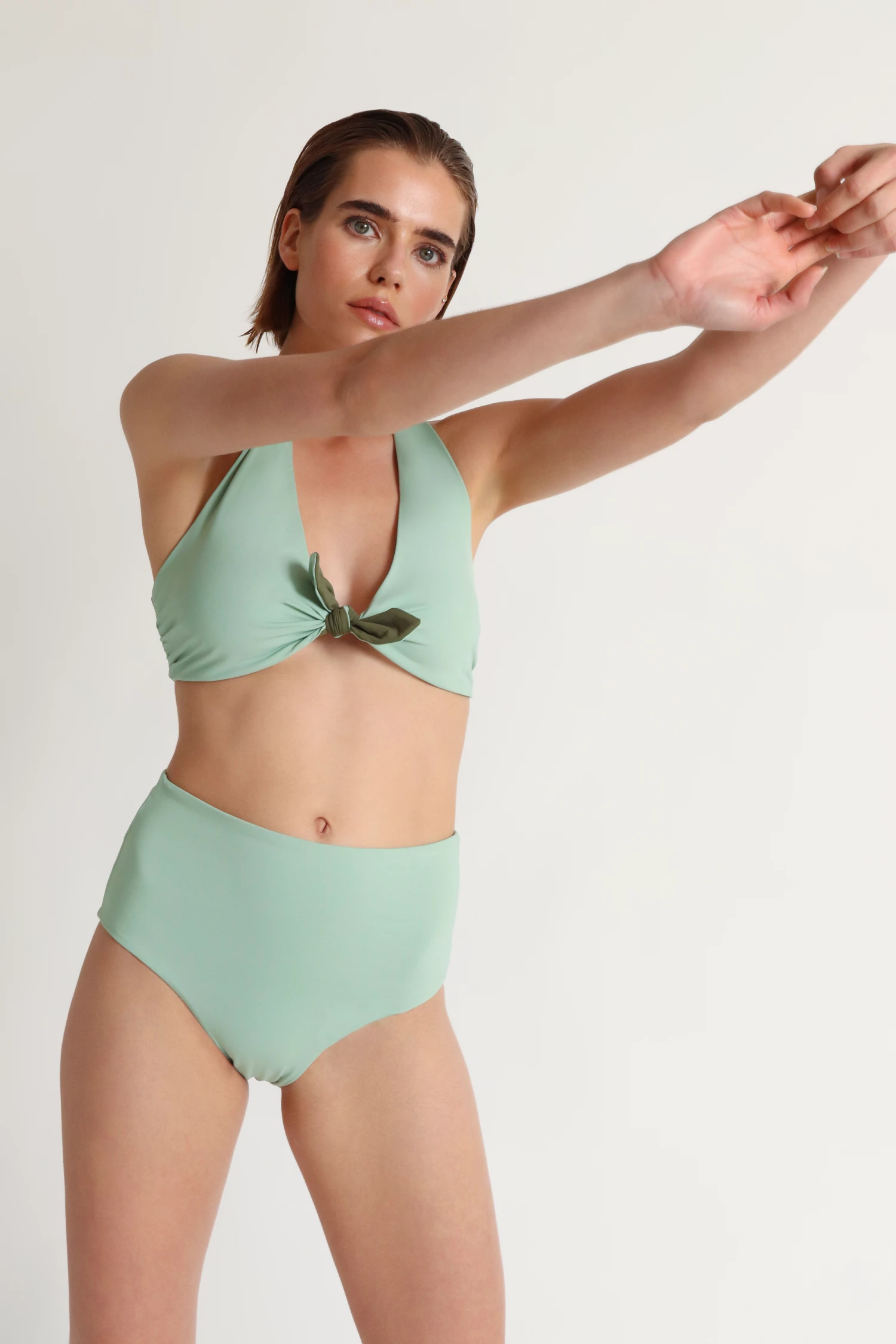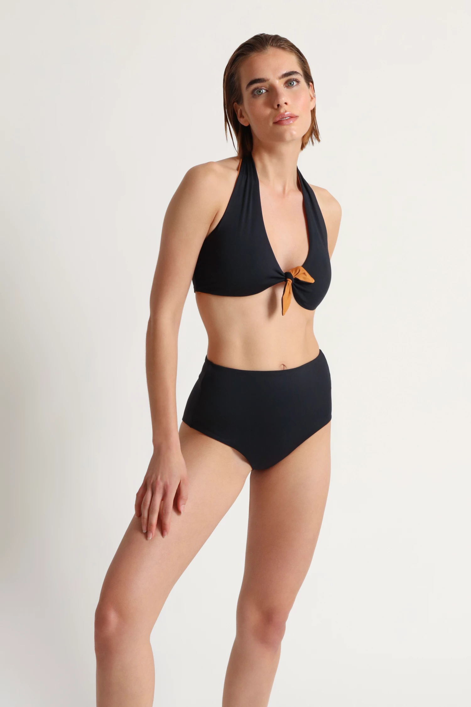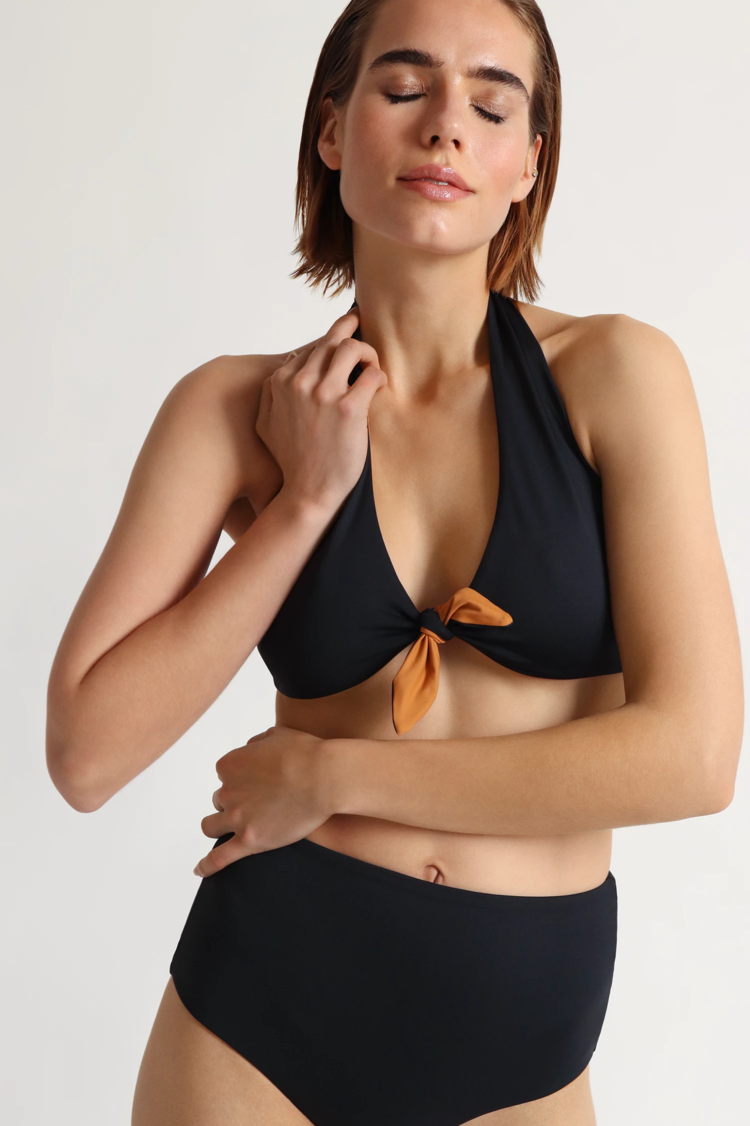 Two-in-one, this reversible summer style can be worn to reveal whichever color you choose. Crafted from 100% recycled nylon and featuring a halter-style neckline and center front tie, the piece can be easily adjusted to fit the top comfortably. Wear it with the matching Parker Bikini Bottoms.