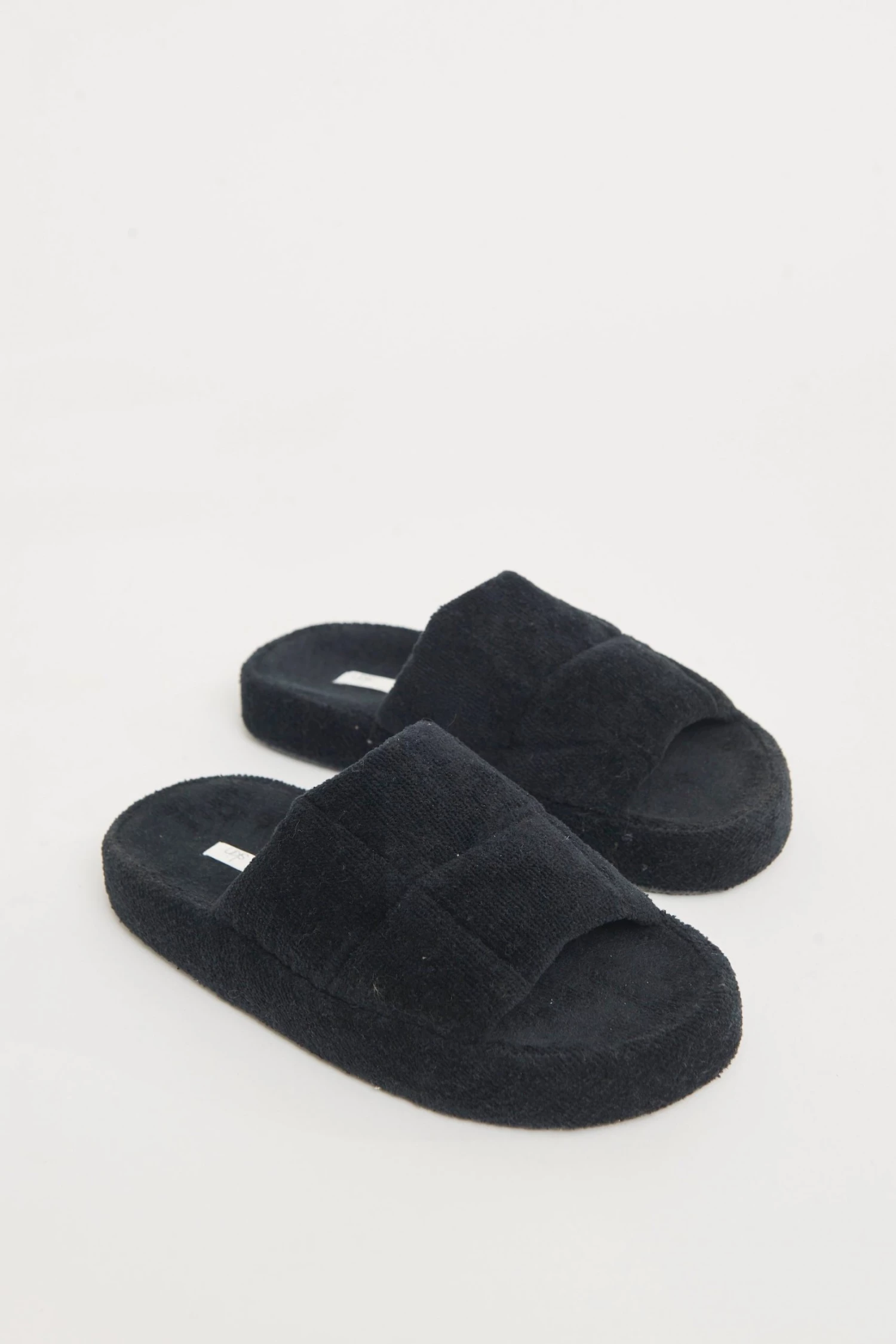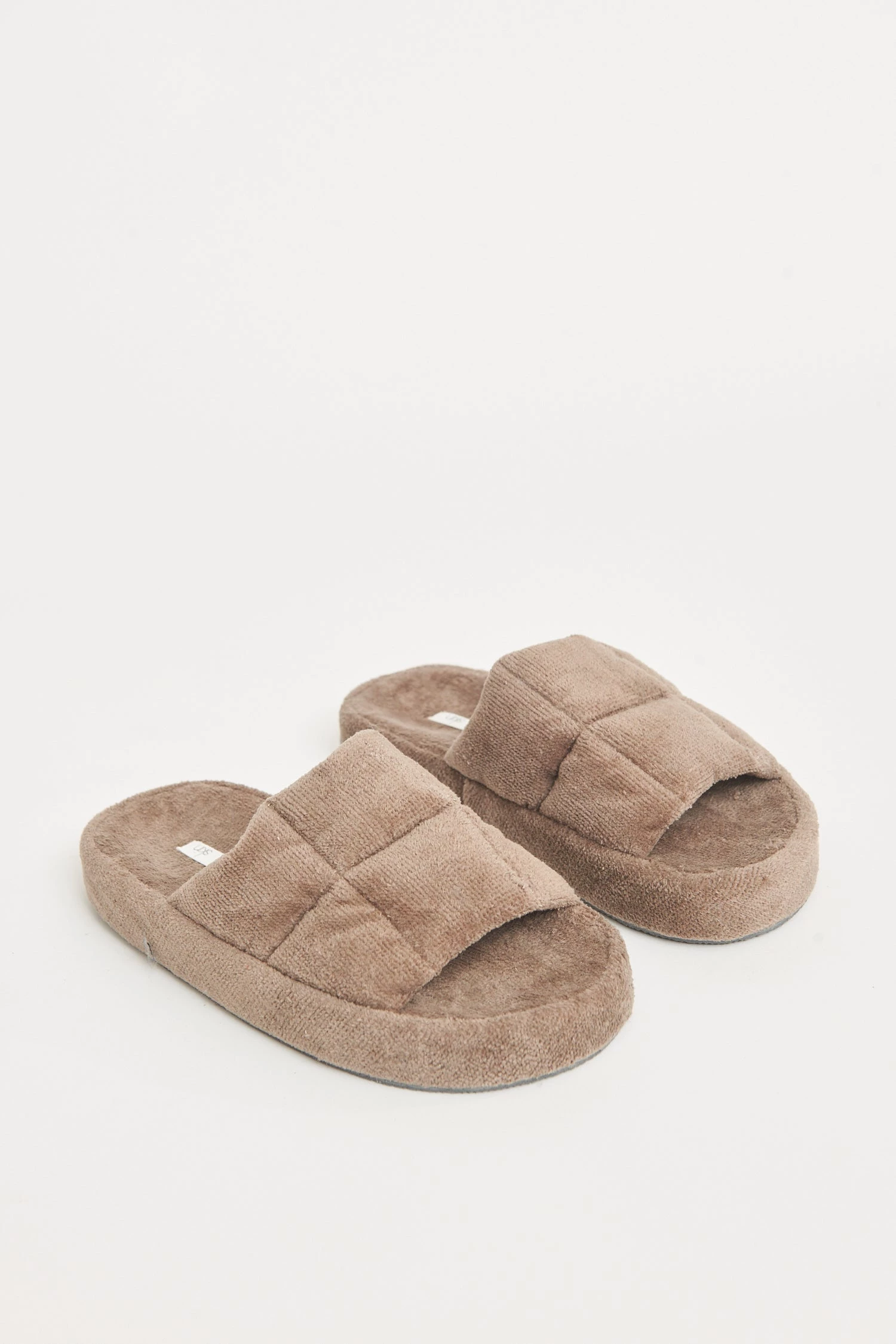 Put a little spring in your step! The Quilted Terry Slides feature a molded footbed that contours to support the foot and hold you like a hug.