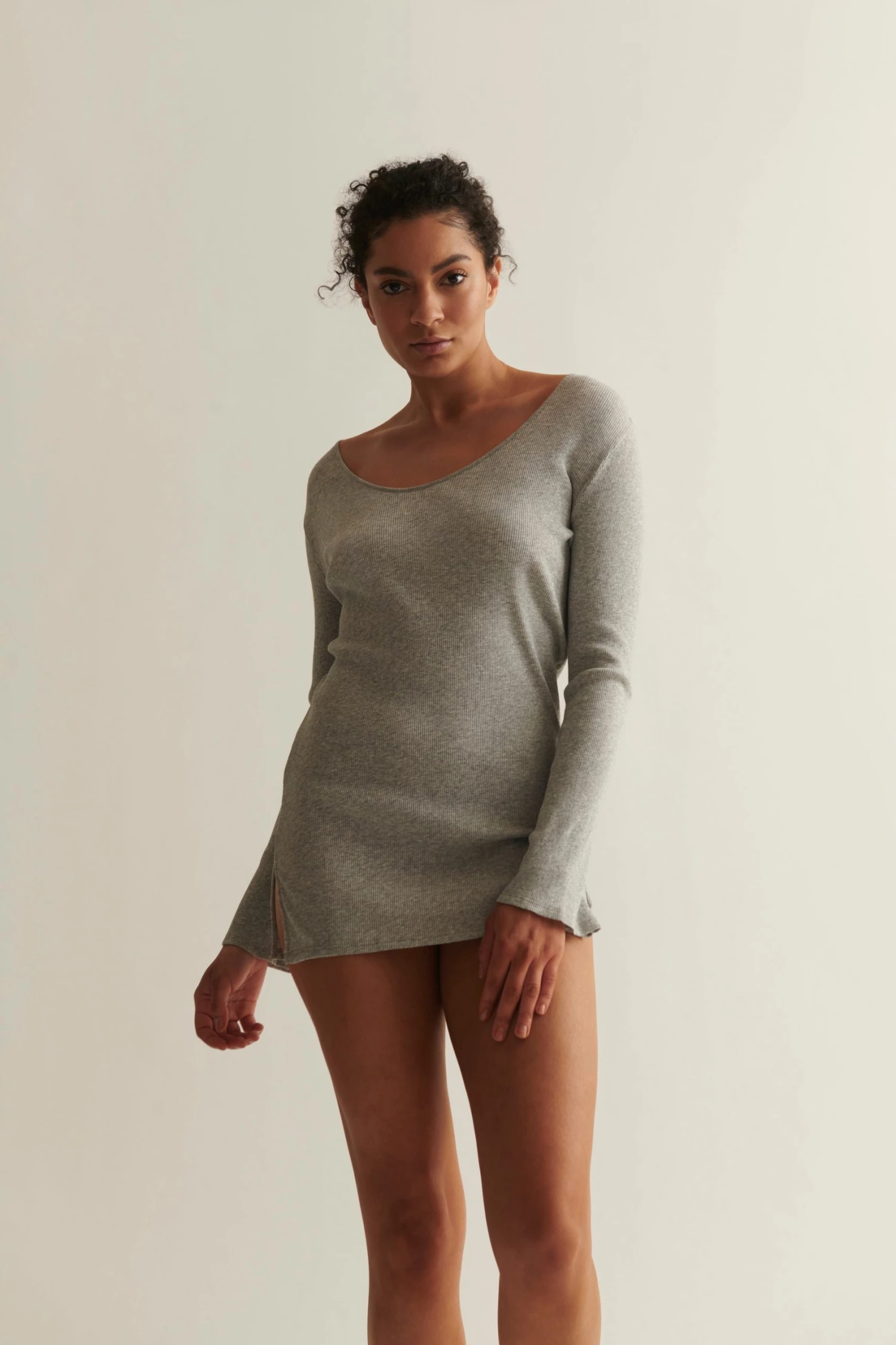 The Romina sleep shirt is crafted from pure Pima cotton and features a subtle V-neck, long sleeves and a relaxed, elongated silhouette.