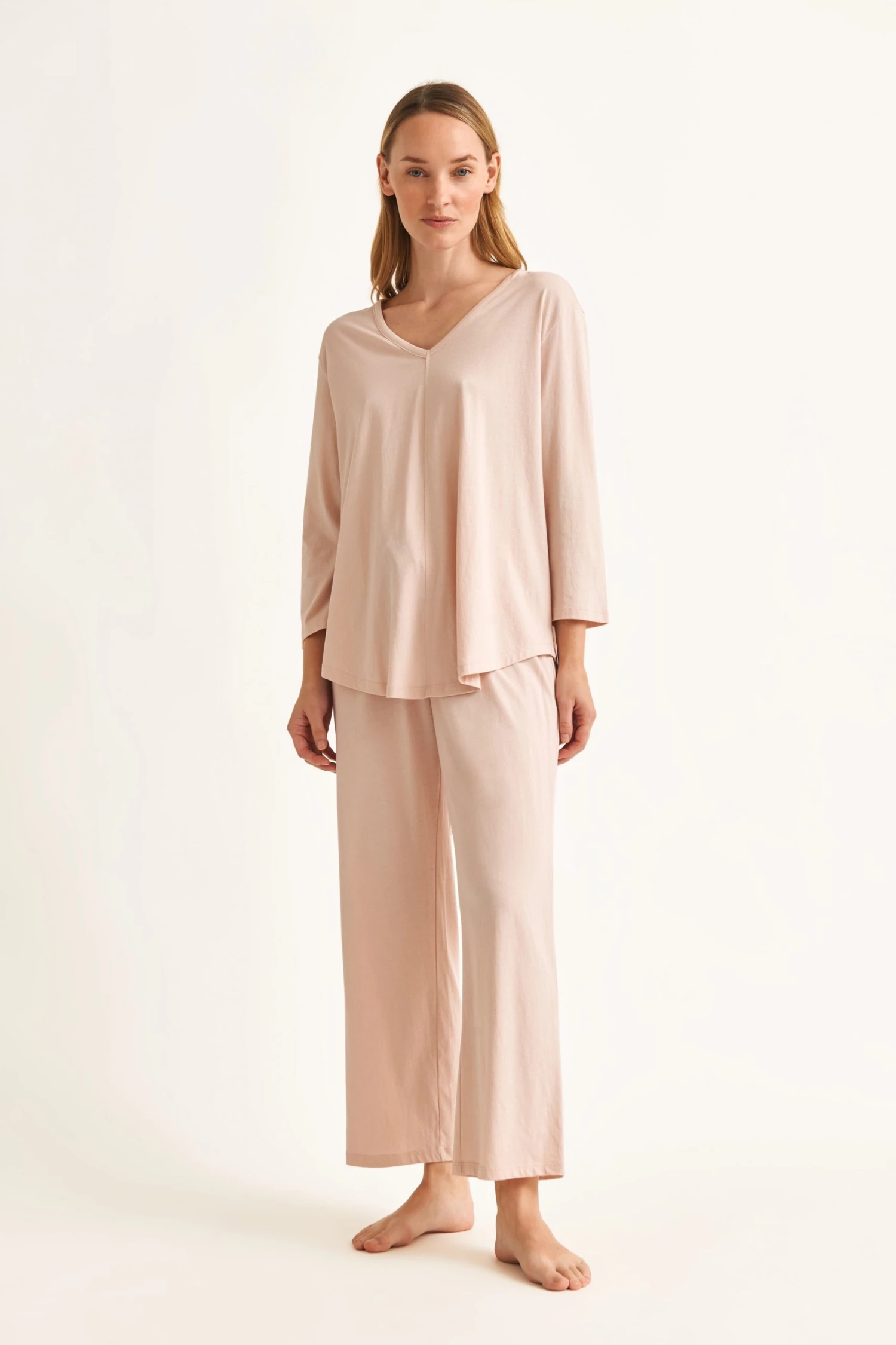 Designed for effortless comfort, the Christina PJ Set features a soft v-neckline, roomy 3/4 sleeves and a relaxed fit crop pant.